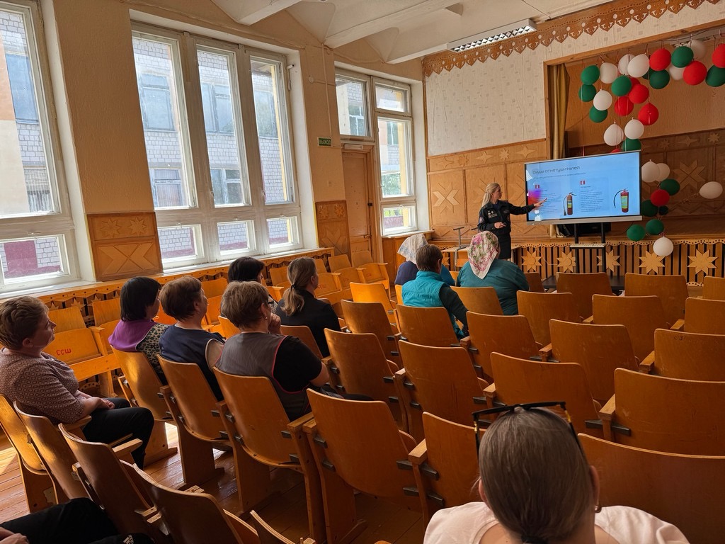 Работа по профилактике происшествий не ограничилась частными домами. В здании школы был организован сельский сход, где собрались представители МЧС, органов внутренних дел, энерго- и газинспекции, общества спасения на водах. Перед местными жителями подробно развернули картину текущей ситуации с пожарами — как в области, так и в самом районе.