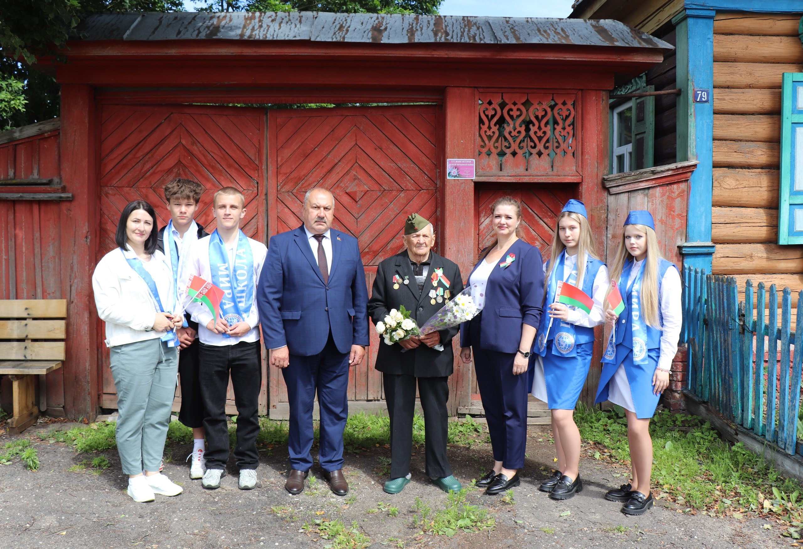 В канун Дня Независимости Республики Беларусь представители органов власти и молодежь Ветковского района поздравили с наступающим праздником ветерана Великой Отечественной войны Михаила Гавриловича Гриськова. Цветы и подарки от имени общественности вручили председатель районного Совета депутатов Виктор Масейков, начальник управления по труду, занятости и социальной защите райисполкома Наталья Дорошевич, а также учащиеся гимназии.