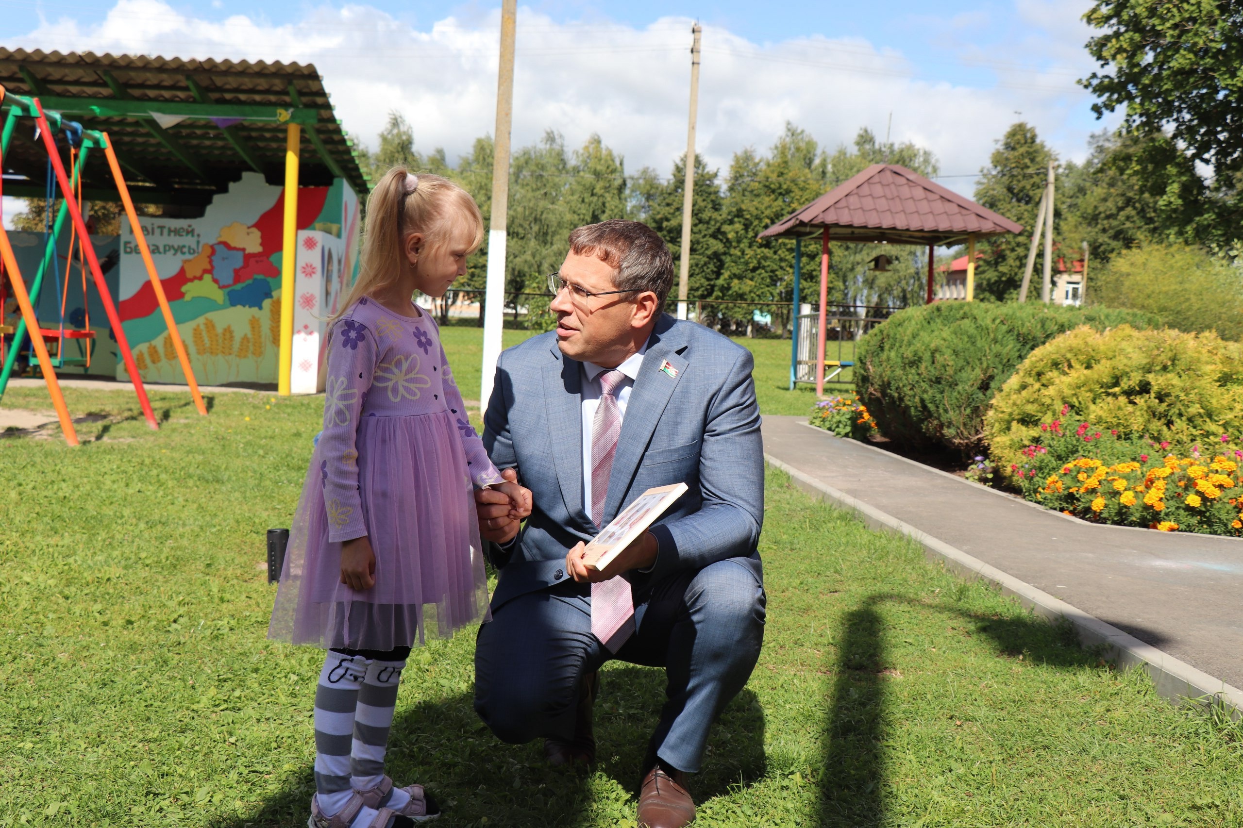 В рамках акции депутат Палаты представителей Национального собрания Руслан Вегера и заместитель генерального директора РУП «Гомельэнерго » Сергей Жандаров вручили портфель и сладости юной первоклашке Ульяне Надточеевой, которая 1 сентября пойдет в Даниловичскую начальную школу. Родители Ульяны работают в Агрофирме им. Лебедева.