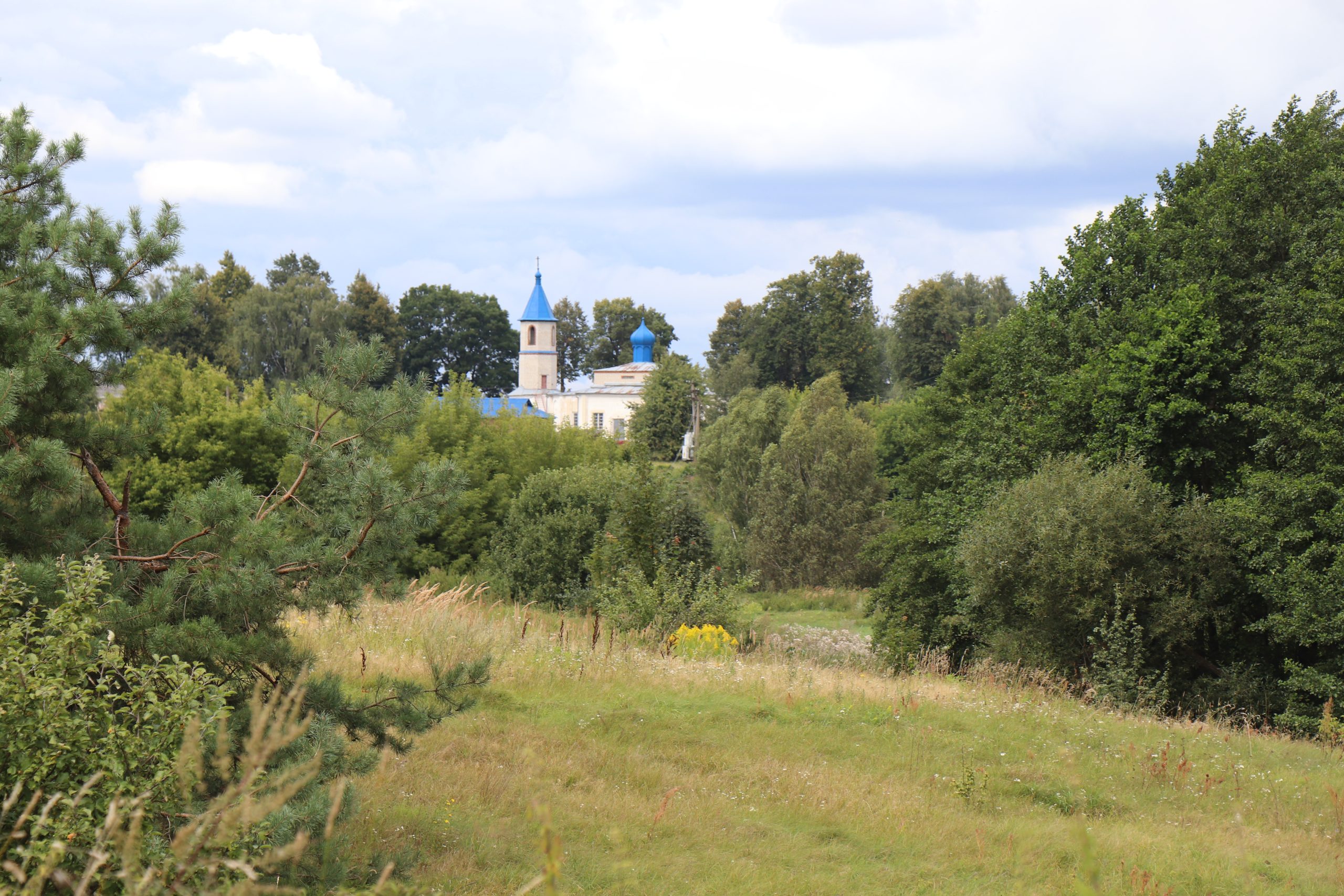 На сайте указаны ориентиры для его по­иска: находится в юго-восточной части аг­рогородка, недалеко от улицы Ворошило­ва (дорога в сторону д. Колбовка). Далее описывались тропы и грунтовые дороги. Но на сегодняшний день все они практи­чески заросли — проверено на практике. И мы с Антониной Гришеч­киной пробирались по окраинам заброшенных крестьянских огородов по едва заметной про­шлогодней тропе, бук­вально по наитию. Иной раз казалось, что тропа звериная — уж слишком тонкая и неявная. Берег старицы, по которому мы шли, захватили буйные травы и крапива. Нему­дрено, что пару раз, оши­баясь, теряли дорожку.