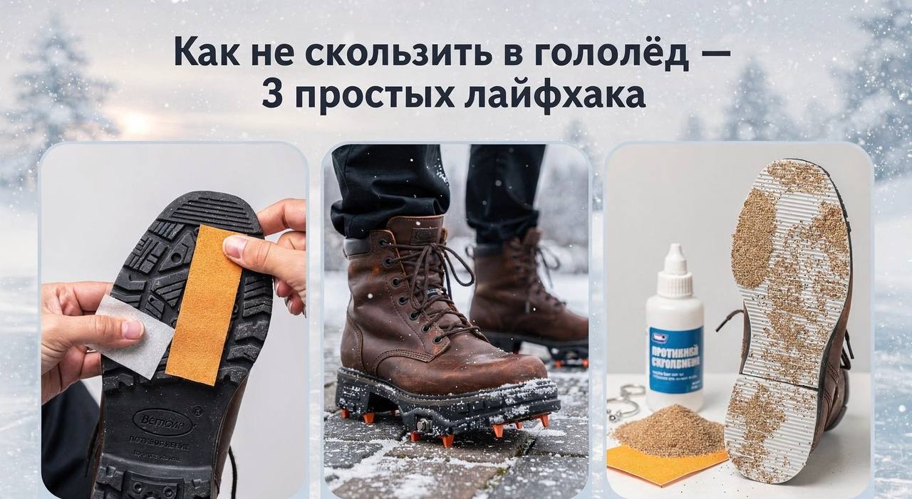 Как использовать: очистите и высушите подошву, приклейте по центру и по краям пятки/носка. Работает на асфальте и лёгком льду, не портит обувь.